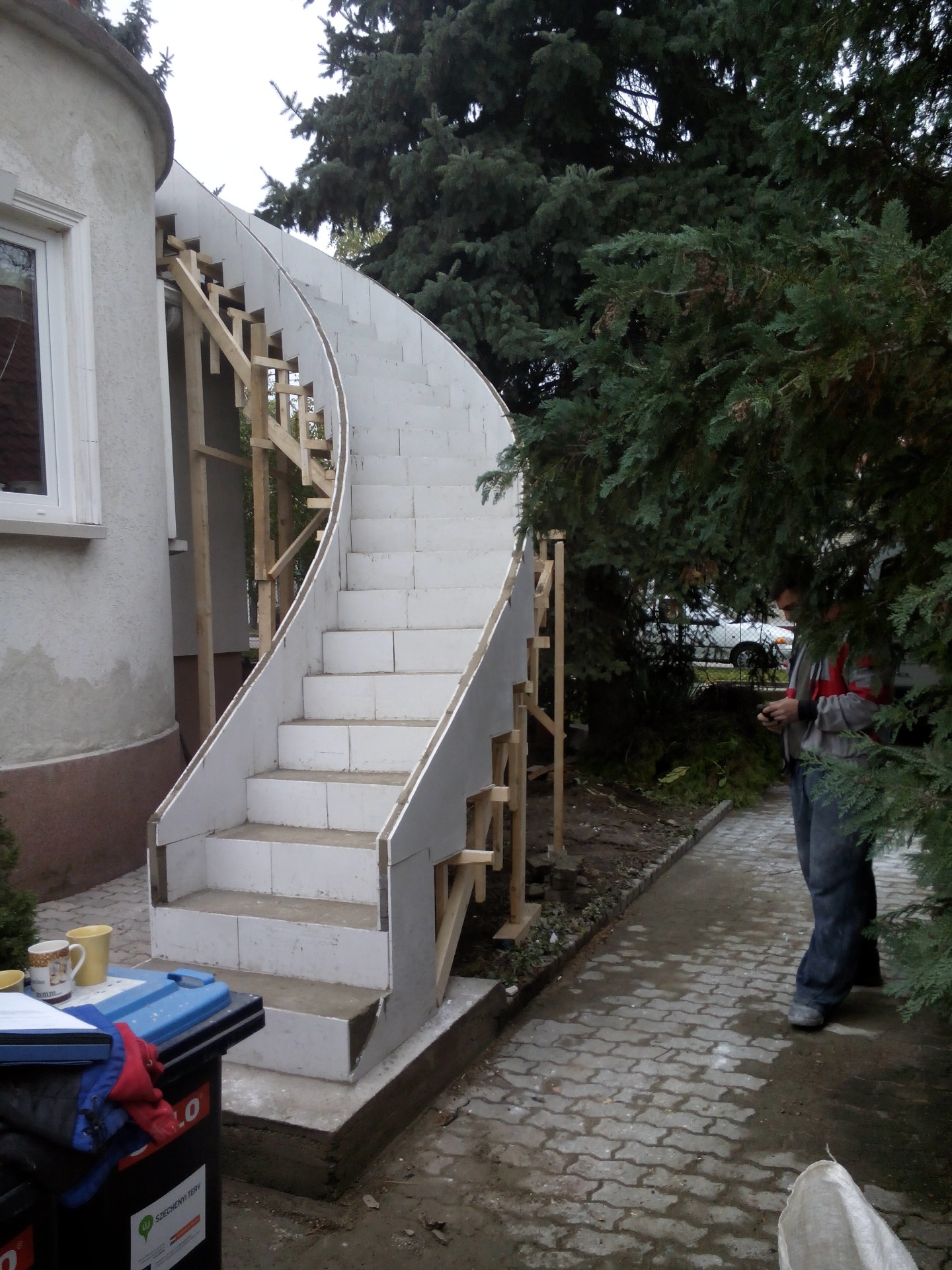 Stavíme exteriérová schodiště na míru technologií TopStep™. Využíváme sádrové bednění, do kterého se lije pískový beton.