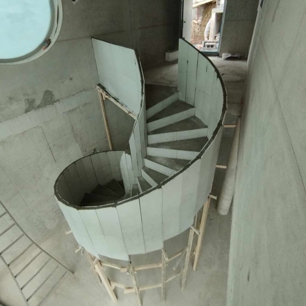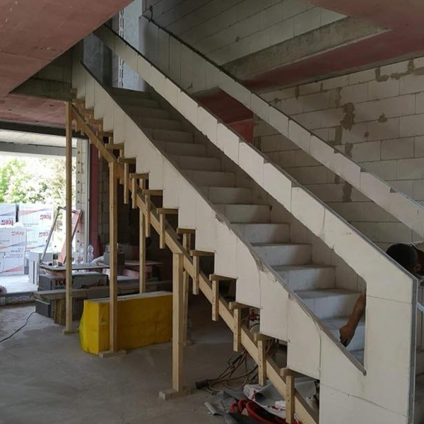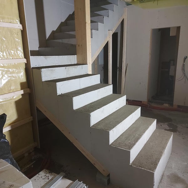 Stavíme schody na míru moderní technologií TopStep™. Využíváme sádrové bednění, do kterého vléváme pískový beton. Samotnou nosnou konstrukci tvoří betonová kostra schodiště vyztužená ocelí.